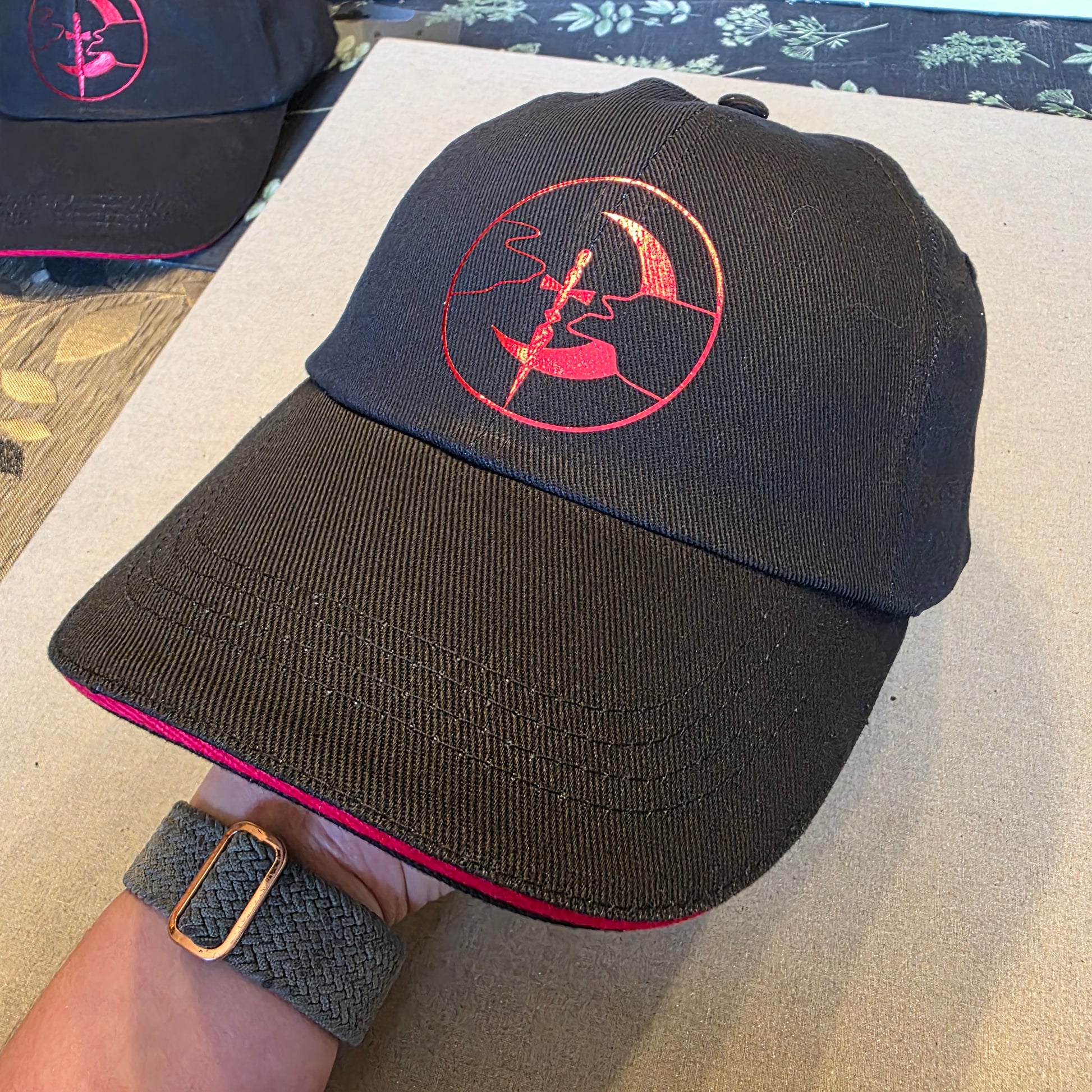 These caps are black with a red brim and a red metallic scouts guild logo 1125.